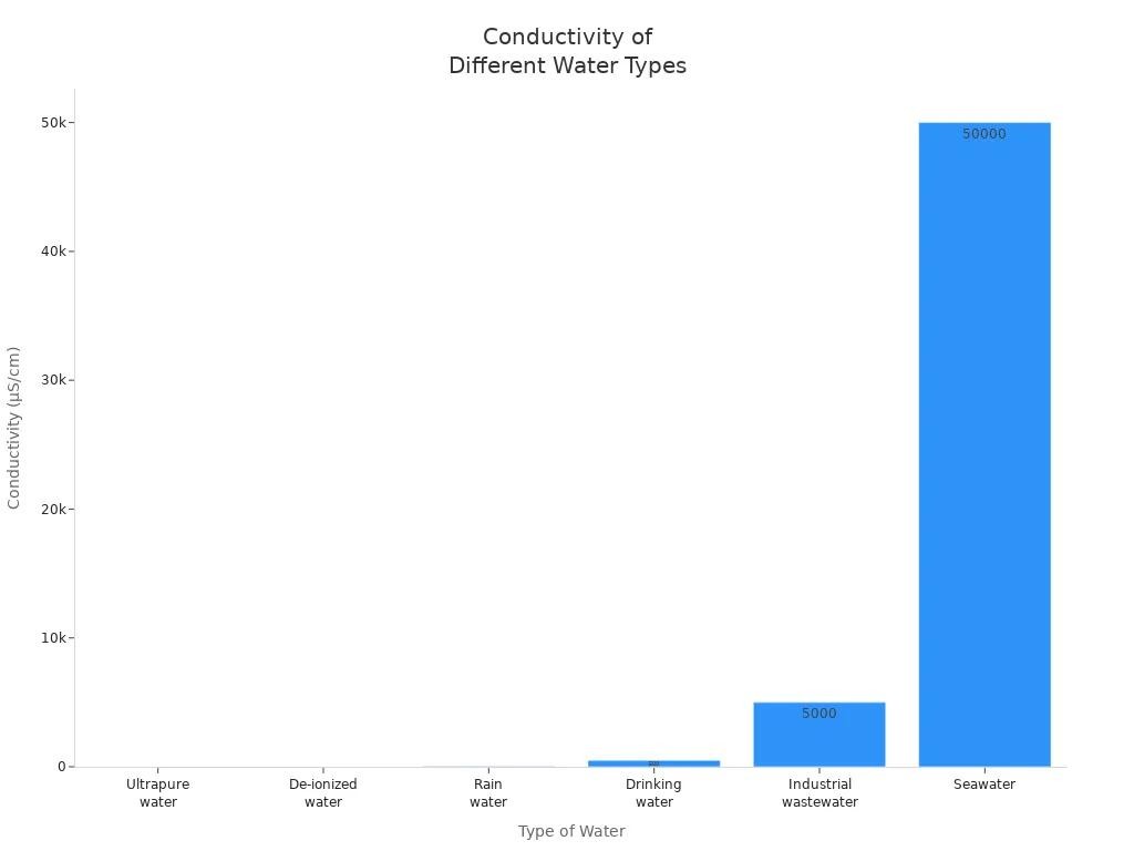 您还可以使用电导率仪来比较不同水质。下表显示了一些常见水质的电导率: